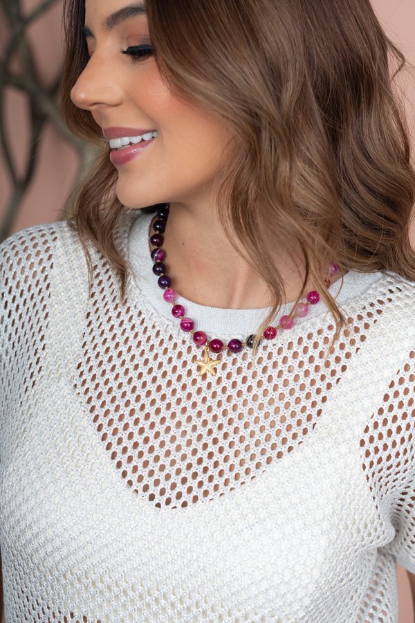 Una prenda que captura la luz y eleva cualquier look. Confeccionada en malla ligera de acabado plateado, esta blusa aporta un brillo sutil que realza la feminidad sin perder delicadeza. Su diseño permite jugar con capas y texturas, convirtiéndola en la aliada perfecta para looks de día o de noche. Ideal para quienes buscan destacar con elegancia y un toque moderno.