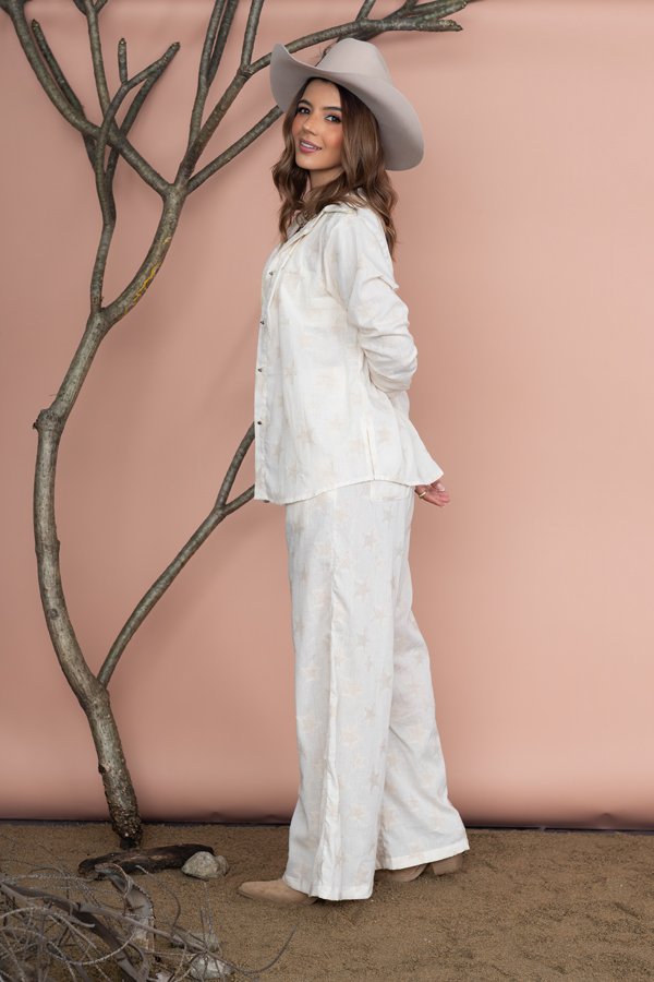 El Pantalón Jalisco combina frescura, comodidad y elegancia en una silueta pensada para acompañarte todo el día. Su caída ligera y su ajuste relajado estilizan sin esfuerzo, mientras los delicados detalles elevan la prenda con un aire sutil y femenino.
